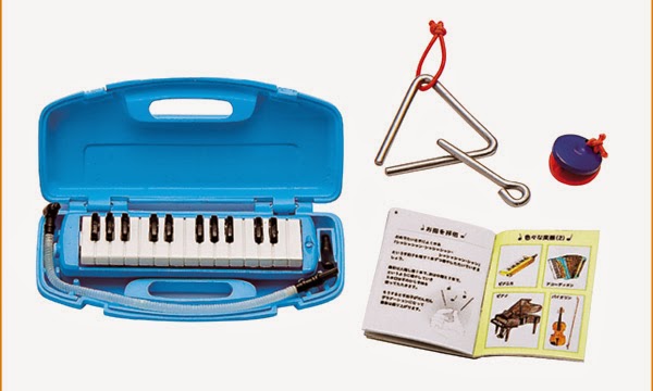 The blue book with the print of dog is used for teacher-parent contacts. It was like we record a list of homework in it when our teachers assigned daily and add a checkmark once we finish a line on the list. Each night parents took a look at the list and made sure we finished all the tasks and signed their name and left comment for the class teacher. The next day teacher will go through all the parents'signatures of the whole class and leave feedback if needed. Next to it is an exercise book for Japanese. Yes, just like American students have English class, we all have a class named our mother language. And I don't know if it's still like that, but when I was little, we were asked by school to learn a small music instrument. We could select between clarinet and harmonica. :)